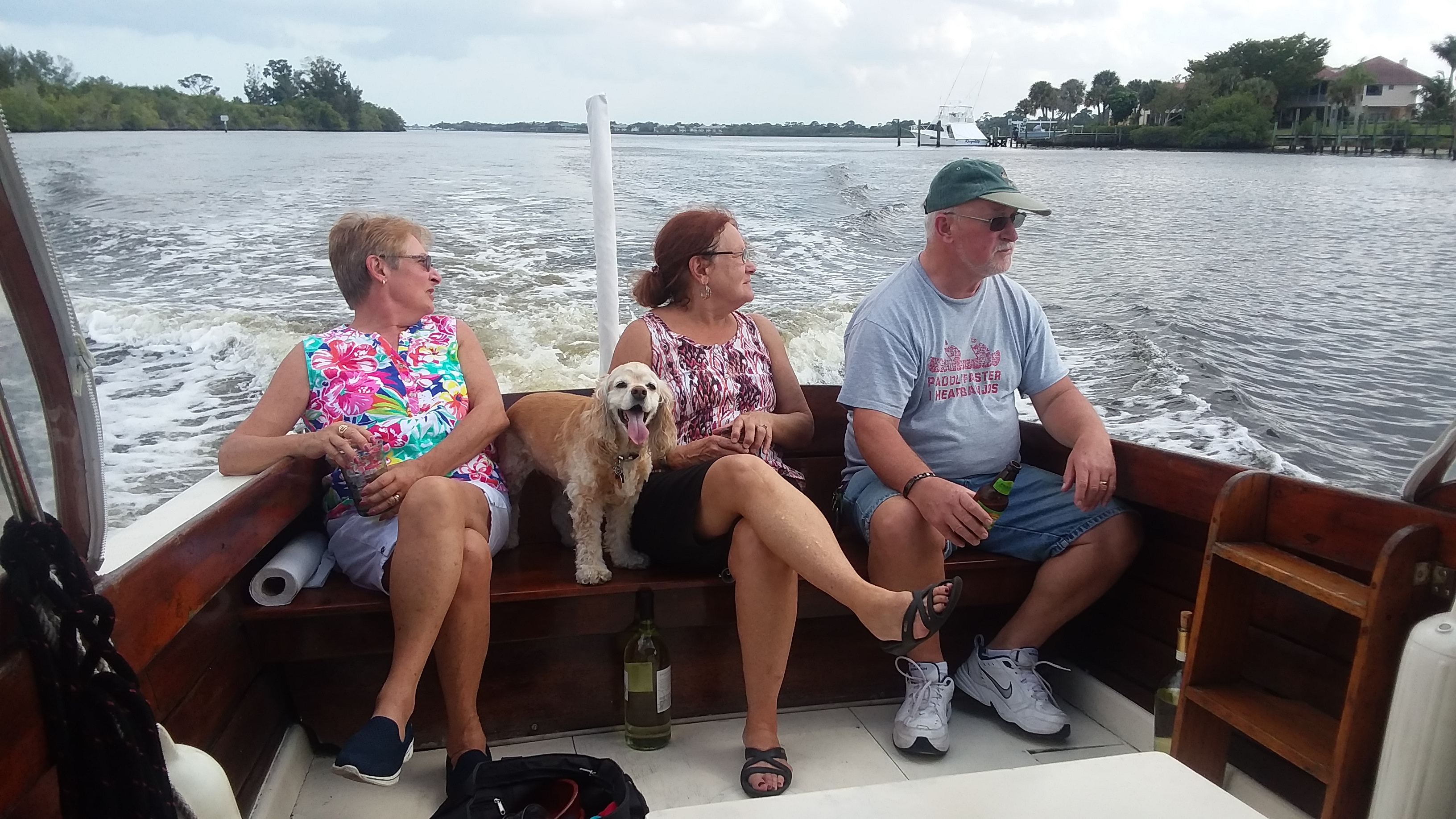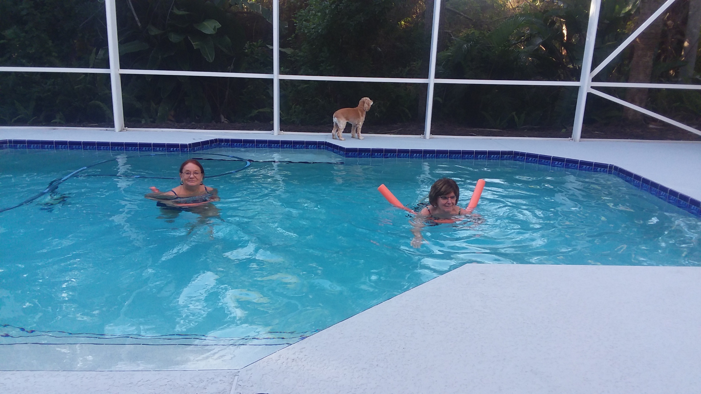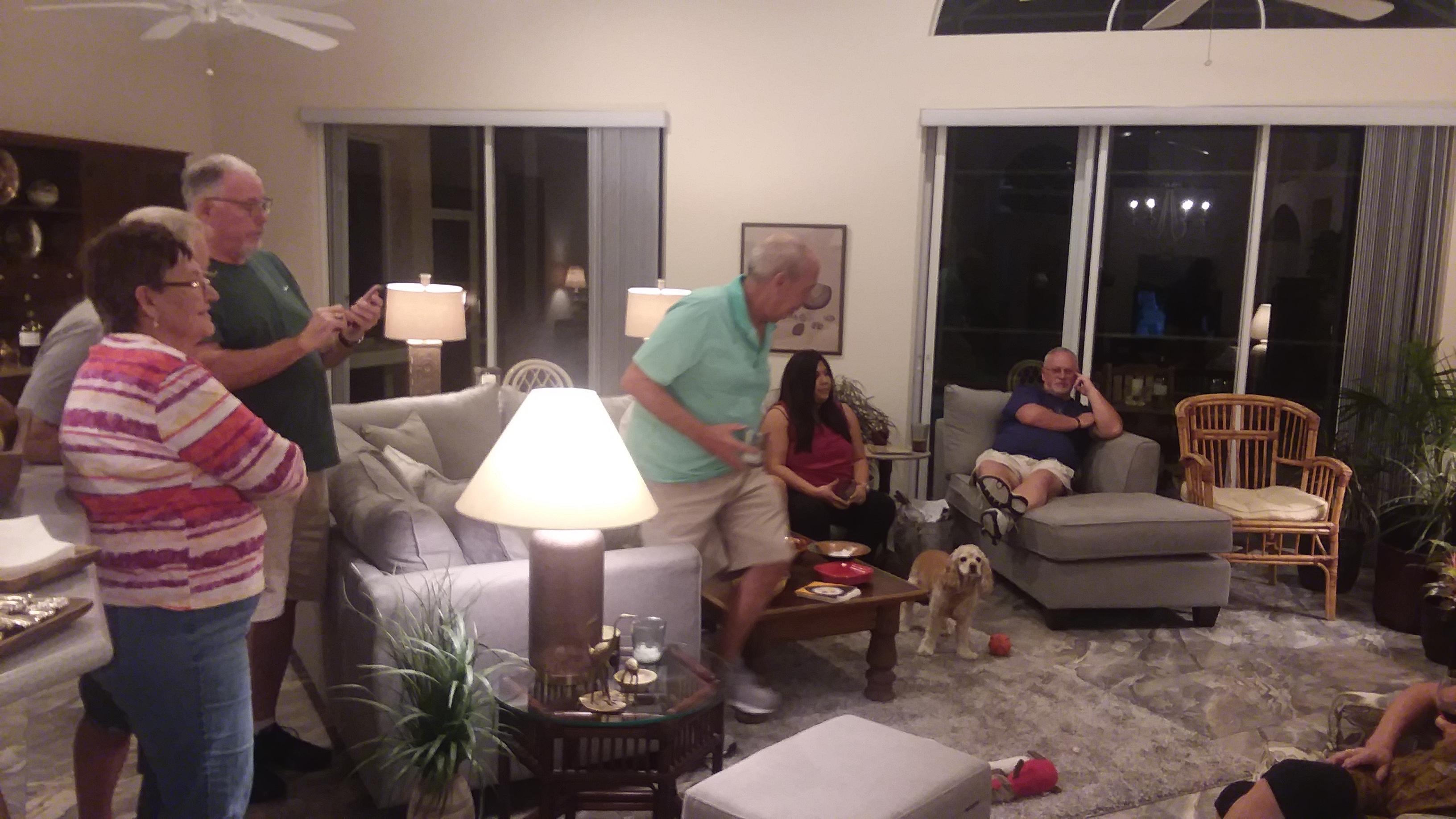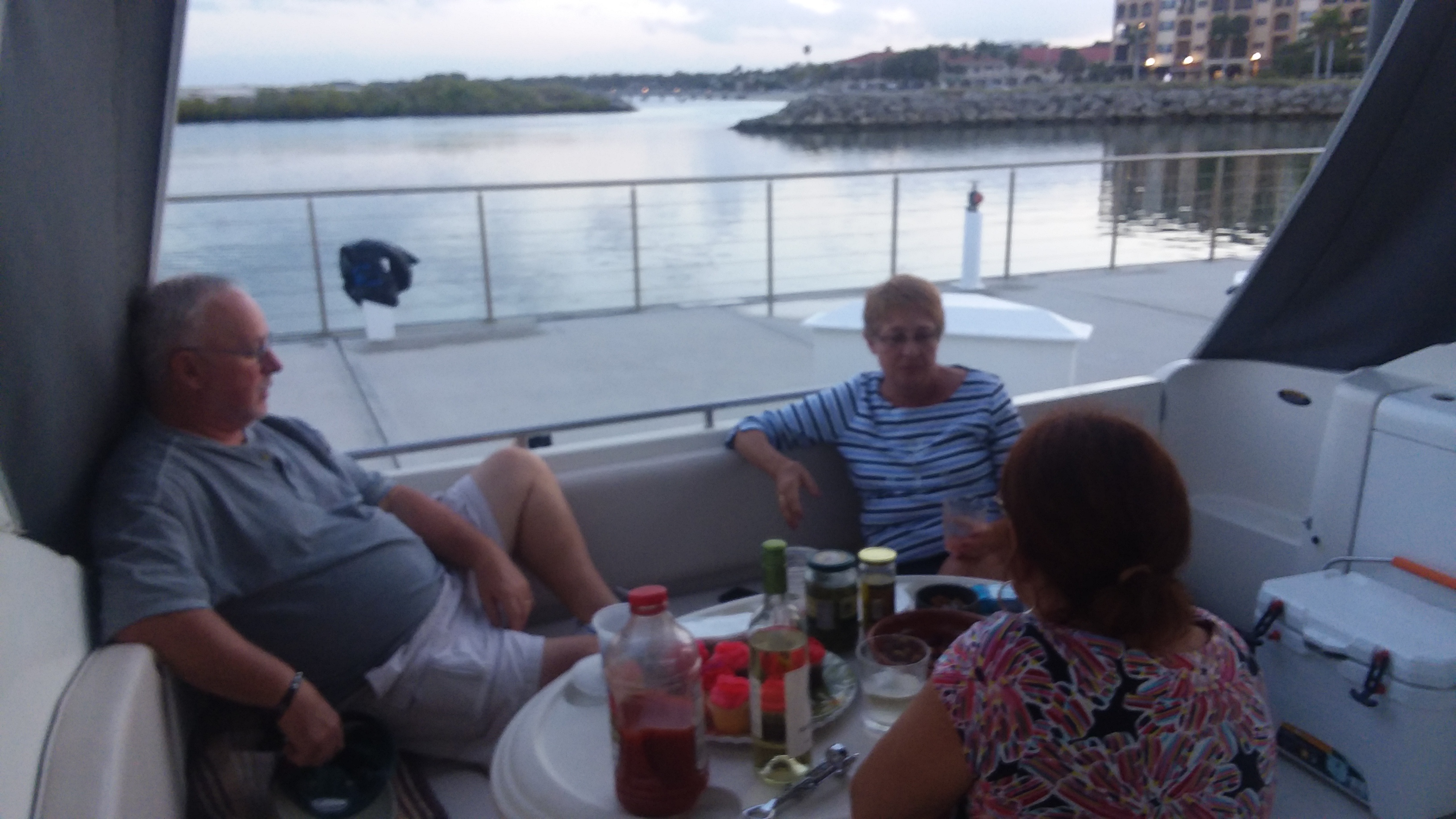 This is our February story. We are starting out with a bit of chilly weather, although still in the 60s during the day. Jack and Ann returned for a second visit. So happy to see them. They arrived on Super Bowl Sunday, February 3rd. We had a party inviting some of our friends to meet Jack and Ann and watch the game. Had great food, drink, and really enjoyed the camaraderie. On Monday Carey and I took Jack and Ann out on Apolonia for a boat trip to Vero Beach and lunch at Riverside Café. A fantastic day with warming temperatures. They had to head home on Thursday, Feb 7 after helping us tour the area again and eat at some of the best Florida restaurants. Ann and Carey even got a chance to jump in the pool … after we ran the pool heater for a bit.