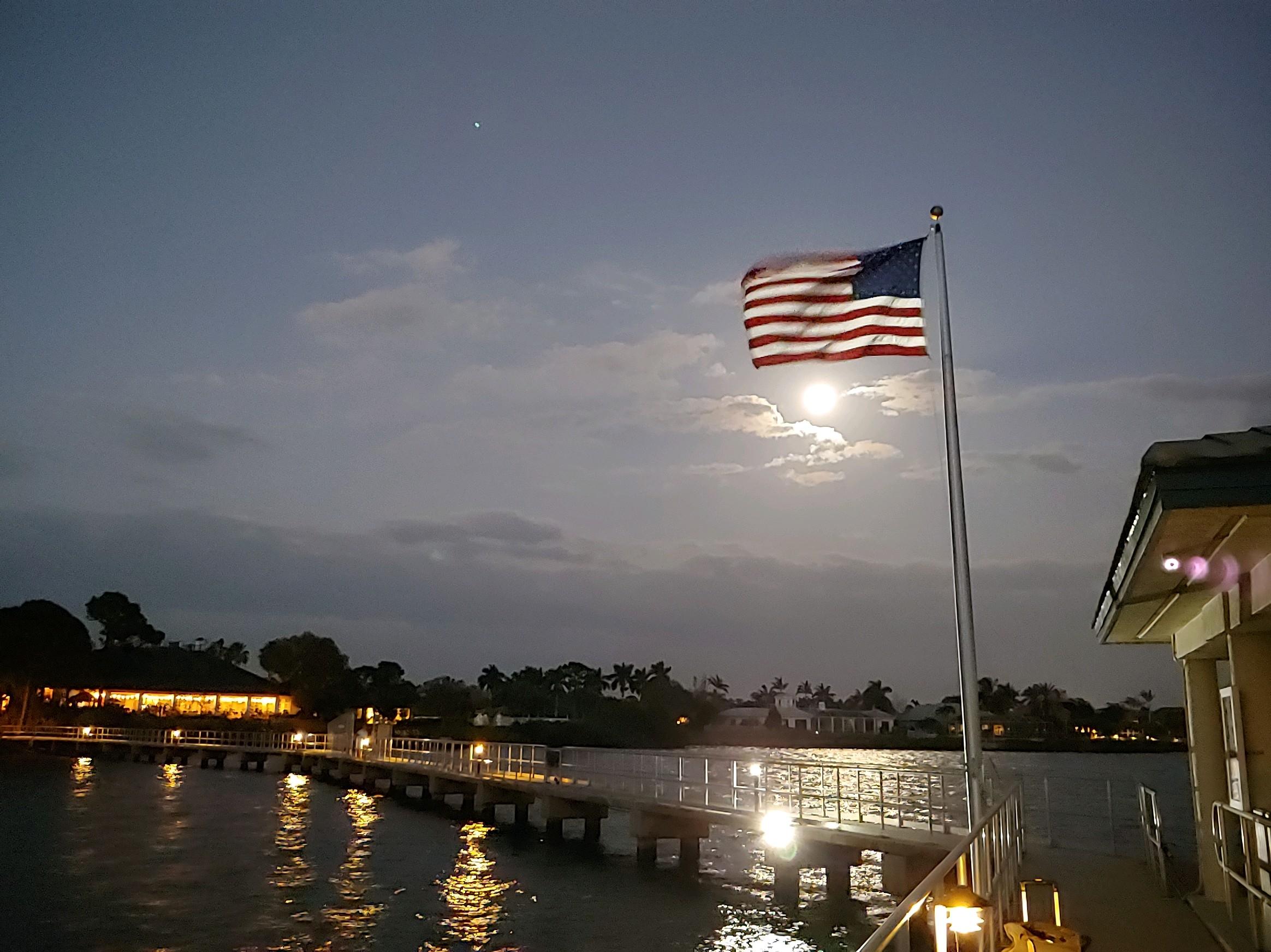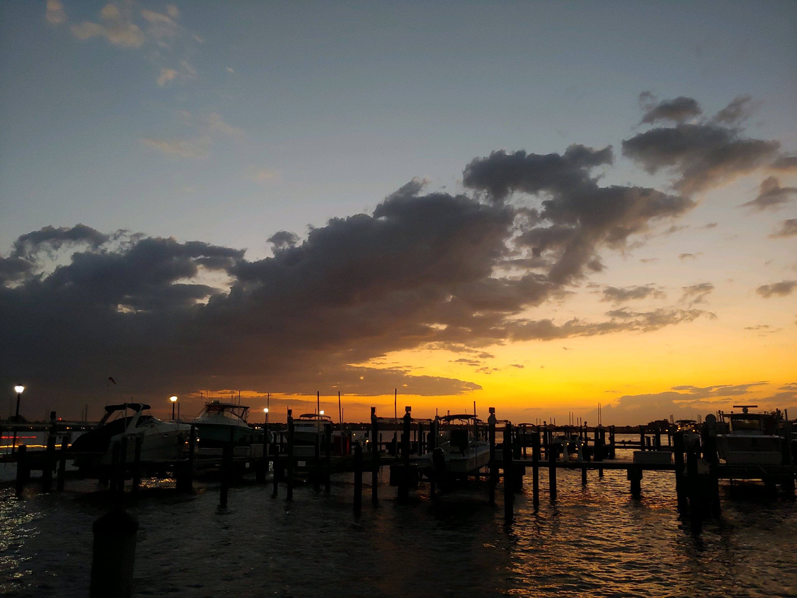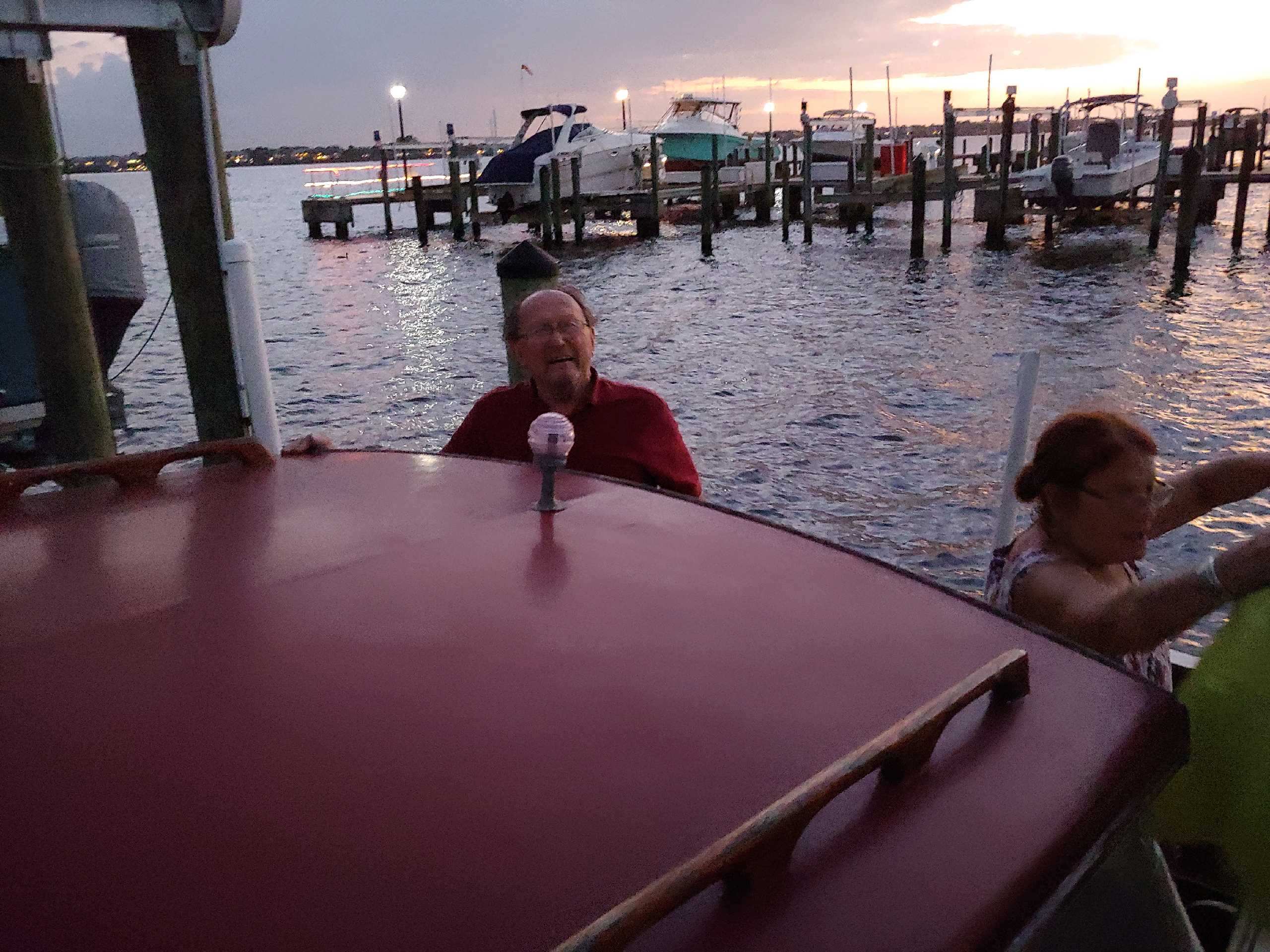 February continued its warm up and we decided to do some more boating. On February 18 we headed out on Paget to explore the North Fork of the St Lucie River. Rowdy, Chris and Mike joined us and we enjoyed a pretty trip on the North Fork of the St Lucie River in our picnic boat Paget. What fun. At the end of the run we motored to The Deck Restaurant near the Roosevelt Bridge and picked a slip so we could eat an early dinner. Afterwards we motored back to the Ballantrae Yacht Club and moored the boat just after sunset. We’ll do more of this.