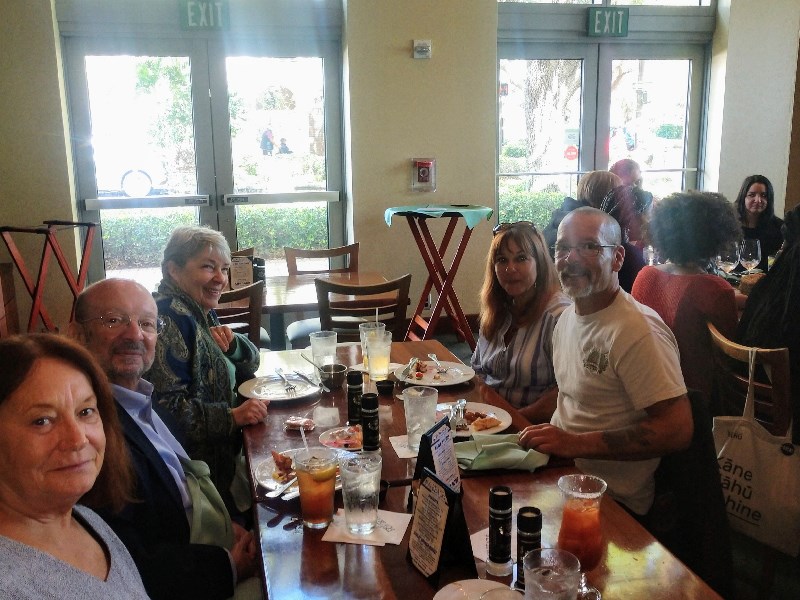 In late February, after talking to George and Polly, we decided to go to their new home in St Petersburg, FL and help them with travel to medical appointments. Polly had to have eye surgery and George had several cancer treatment appts. We decided to take Apolonia, making it a boat trip also. We left Port St Lucie 29 February and headed out. After crossing Okeechobee Lake we stopped at Rowan and Martin’s Marina then Legacy Harbor in Ft Meyers. While in Ft Meyers we visited with Randy and Barbara Semper, good cruising friends from Aqua Harbour, VA. We continued the trip and arrived at St Petersburg municipal marina on the 3rd of March. We moved in with George and Polly and enjoyed their company and hospitality. We became the automobile drivers for a week. Luckily Darrell and Claudia Edgar had time to come to St Petersburg so we could visit with them for an afternoon. We had a good lunch at a local eatery and enjoyed catching up with friends from Aquia Harbour. George and I had to move Apolonia to Gulfport Marina on Wednesday the 11th as our reservation at St Pete Marina ran out and they had no room for an extended stay. The move was a great 1.5 hour on the water for George and I. During our stay in St Pete we met George’s daughter Liz and her partner Tom, as well as Fred and Linda, friends of Randy and Barbara. Good week!