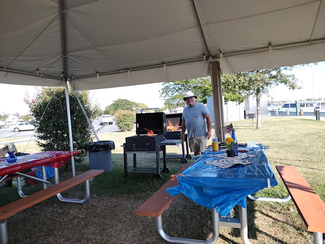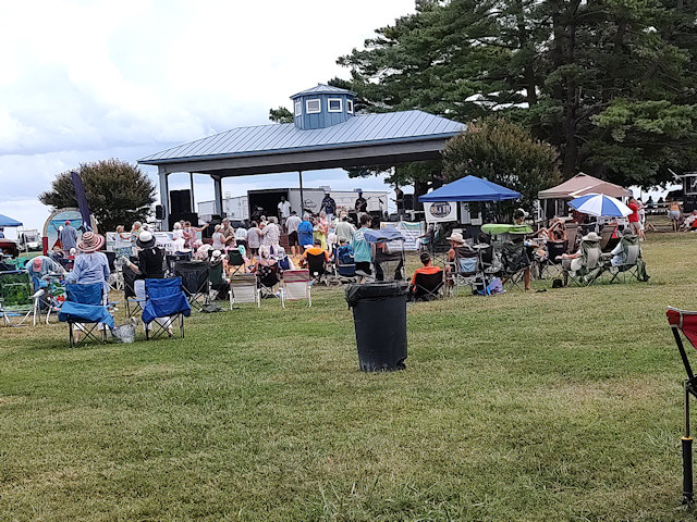 9 Sep: The Colonial Beach Music Festival was on a bright and beautiful Saturday afternoon. It was a beach music festival of southern shagging music and dance. People gathered on town hill under tents and in lawn chairs and danced on real sand poured on top of section of grass. 4 bands keep us dancing all day. The only negative was a big thunderstorm late in the day that stopped the Catalina Feature Band from playing.