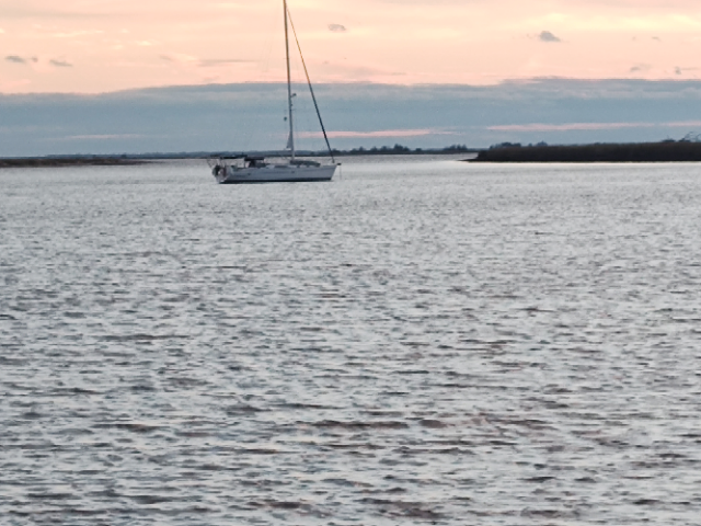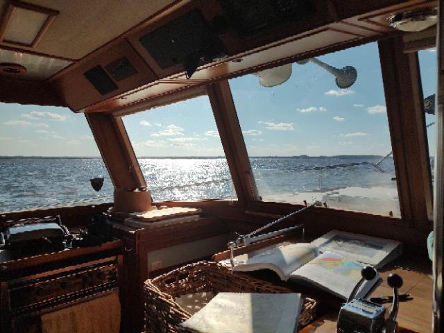 I was either vindicated or just lucky, but the battery was the problem with the generator. The mechanic was here this morning after installing the new battery, which would not start the generator last evening. We were prepared for who knows what. After installation, it became part of the boat’s charging system and we found it was not a “fresh” battery and during the night was charged to its required level. The generator started this morning quite handily and we were off on our trip. We were underway by 10 AM and pushing hard to make up time. We traveled by Skidway Island and Isle of Hope (a great marina we have stayed at). Next was Moon River that inspired the song of that name by Johnny Mercer. While the song is great, the River is not a mile wide by any stretch nor stunning. After the Bear River we crossed St Catherines Sound, with winds at 15+ and 3 footers for waves. Sure is nice to be on BenjOllie — she seemed to say “just my kind of water.” We then jumped in the North and South Newport Rivers with good protection until we next had to cross Sapelo Sound, with more wind and seas. Later, after several other rivers, we came to Teakettle Creek with more twists and turns than one would expect, but a fun bit of water travel. And interestingly, we were traveling with 3 sailboats and a beautiful Nordhaven Blue trawler that would have been happy in the open ocean. We passed it at 11 knots and they were surprised at our speed and congratulated us! We finally arrived at Duplin River, a favorite anchorage we’d bypassed the last few trips. The weather should be good for an anchorage. It is finally getting a bit warmer. We don’t like the noise of the generator needed for the heat pumps and taking a chance we won’t need the heat. Tomorrow we’ll pass across the St John’s River into Florida. South Carolina and Georgia transits can be boring with continual spans of lowlands and marshes, but we enjoy the familiarity of the passages and the challenges.