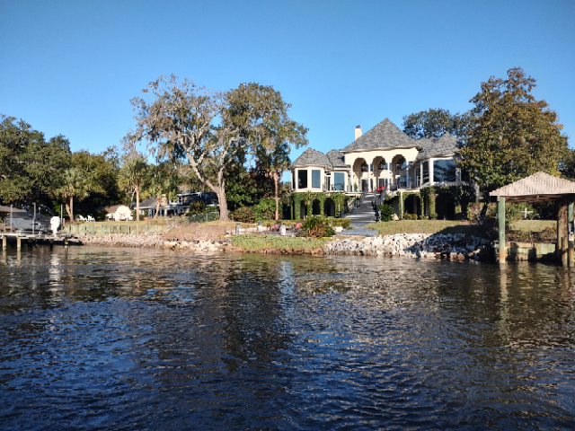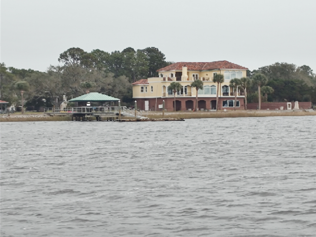 Cold getting out of bed this morning, but we rushed through the preps (ours and the boat’s) to get underway. By seven-thirty, we were off the pier and heading south to Marineland Marina, an 80-mile trip. We started on the Amelia River, then the South Amelia River (original?), and through Nassau Sound and Sawpit Creek before arriving at Sisters Creek which feeds into St John’s River that we crossed into the Jacksonville area. Palm Valley was next where many millions of dollars were spent on waterfront homes. Sorry we did not get many pictures here, but it was mile after mile of overly large homes and docks snuggled side by side. We focused on pushing hard to get to Marineland. One of several rivers we traveled to St Augustine was the Tolomato River. We passed St Augustine early afternoon, one of our favorite stops but not for this trip. We made it safely through the Fort Matanzas Inlet shoal and into Marineland Marina. We’ll leave the boat here for twelve days as we drive back home for medical appointments. We’ll return on the 19th and continue our trip, including a stop at Ft Pierce to have Christmas with Carey’s cousins and see friends and relatives near where we used to live in Port St. Lucie. Then on to Palm Beach to cast off for the Bahamas.