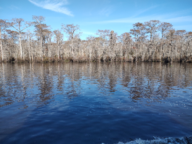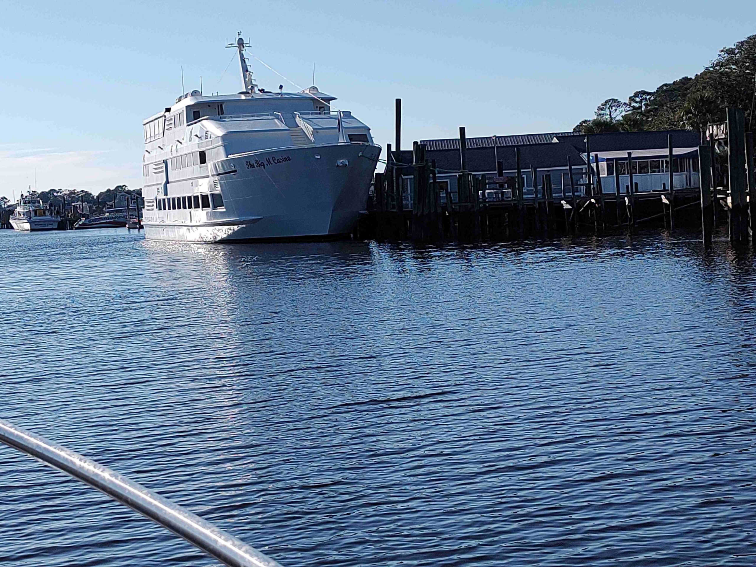 Barefoot Landing Marina was a quiet stop and we were comfortably underway for Georgetown, SC at 8 AM. This 52-mile trip is always a pleasant short trip through canals and woodlands as the Waccamaw River winds its way south to Georgetown. One picture I missed posting yesterday was the tourist cruise ship that had been decorated and participated in last night’s boat parade.
