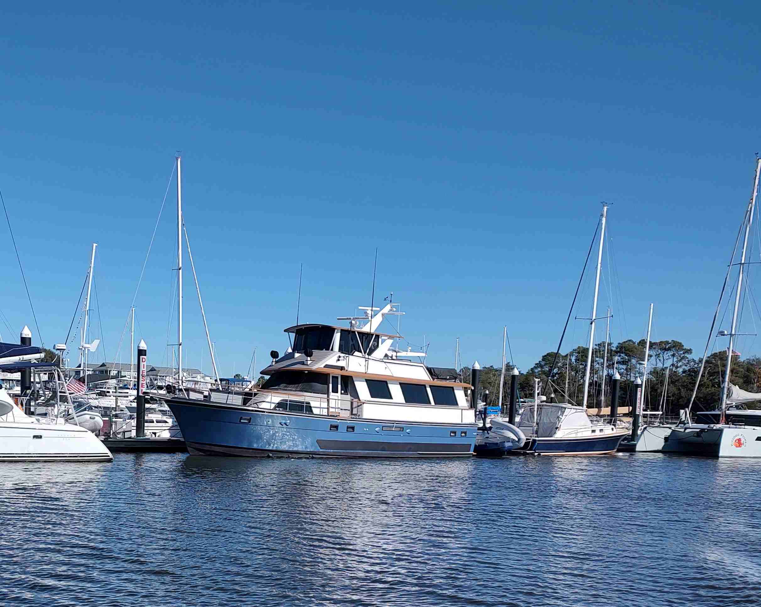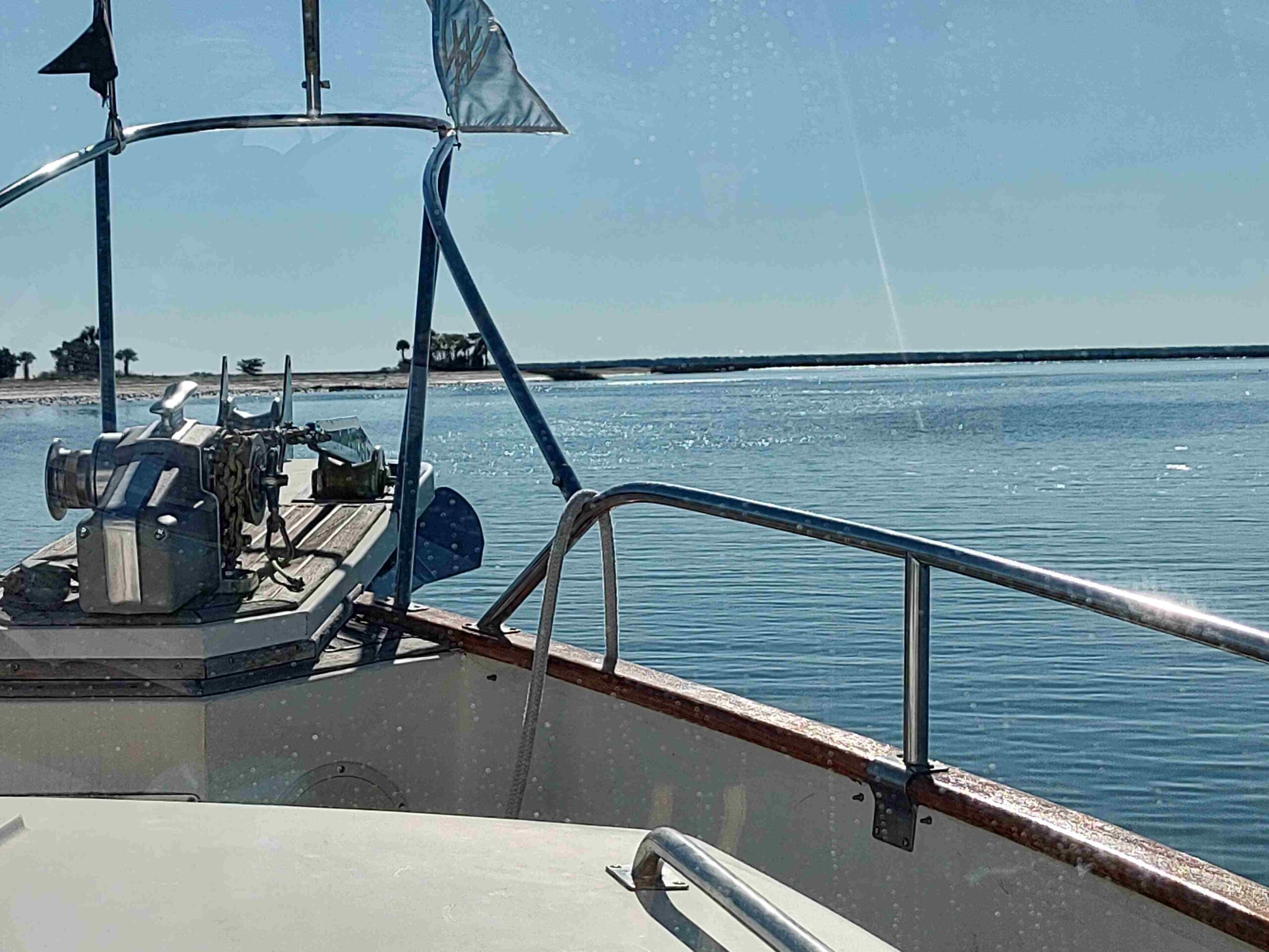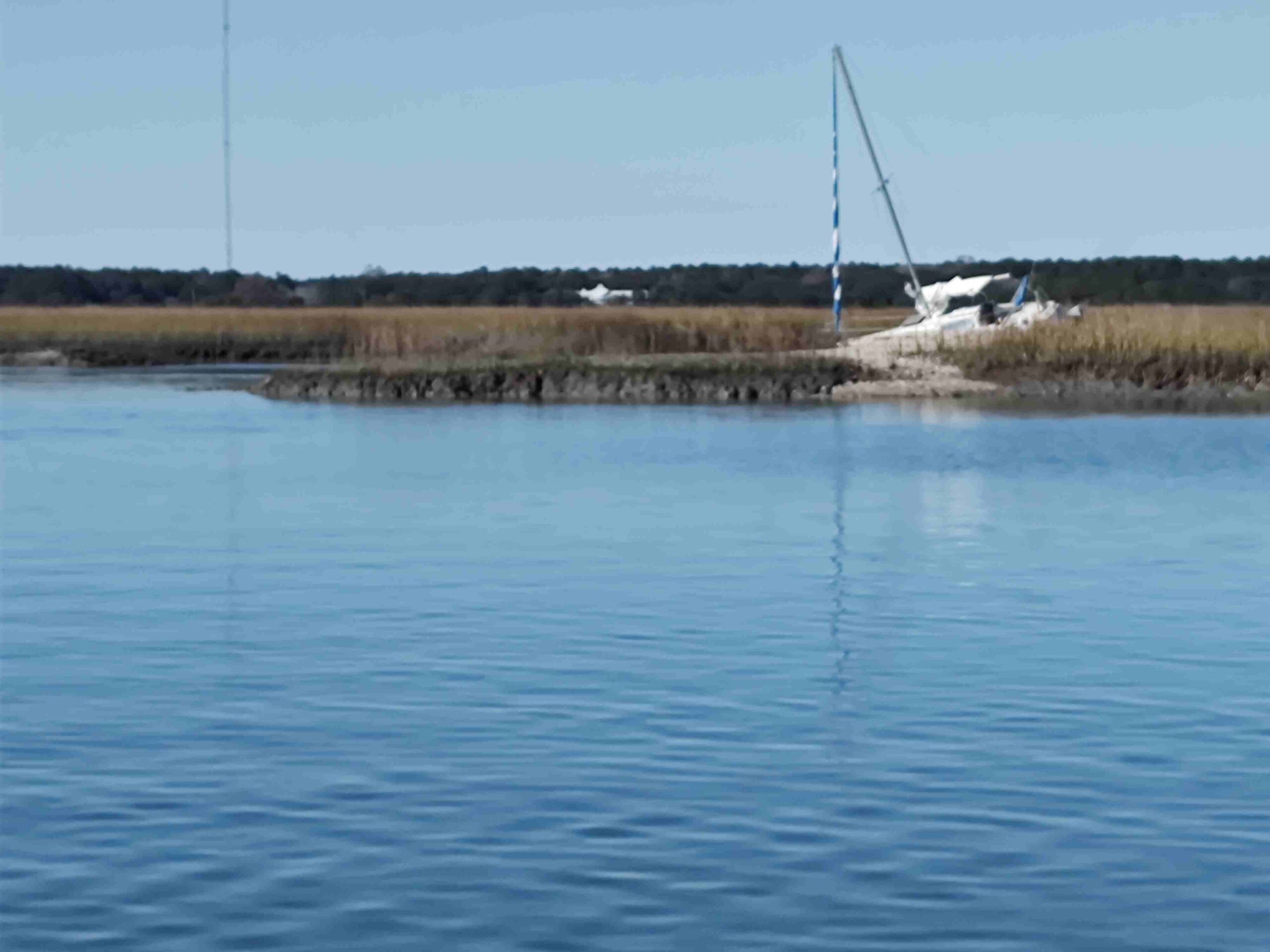After that meal last night, we both slept soundly. Up to sunshine and temps in the 30s, we quickly got the boat underway and headed for Isle of Palm. This is an area on the ICW just north and east of Charleston. We had a pleasant 52-mile trip through some of South Carolina’s low country. We also passed through a very shallow stretch of the ICW at McCellanville SC — at low tide 4.5 MLLW is generally recorded. Luckily we passed it 3 hours earlier and had plenty of water. A later part of the trip near the Isle of Palm, at low tide, caused us concern but we made it through. The rest of the trip was easy. The temperatures even climbed into the 60s for a while. We saw the results of another boating issue along the route and more homes. Carey even found a tower that excited her after a day of boring marshland views. Dinner on board and a quiet evening.