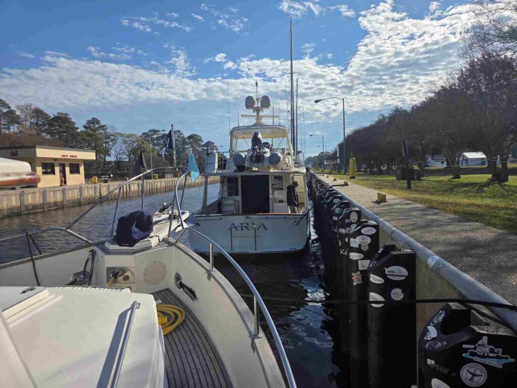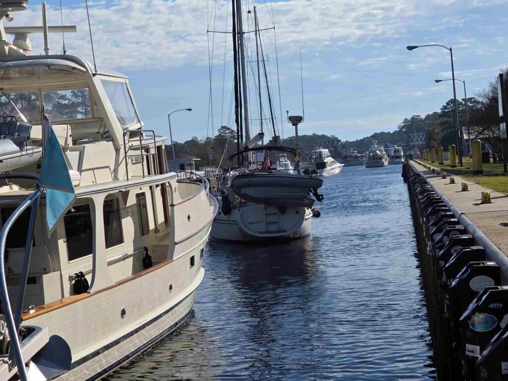 Coinjock Marina welcomed us with its famously long face dock, perfect for accommodating vessels of all sizes. It’s also known for its restaurant, once celebrated for its generous prime rib. When we arrived, the dockhands mentioned they were expecting around 15 boats that evening. By nightfall, that number had easily been surpassed!