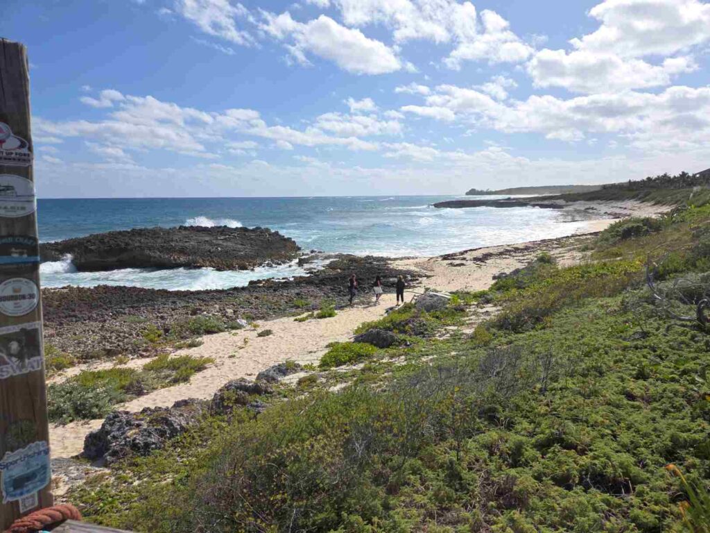 Super Bowl Sunday, but we’re getting some touring in before the game starts with boating friends Jeff and Melissa who are moored next to us on their 52′ Beneteau Sailboat. We headed out in the rental car at noon for Little Harbour and Pete’s Pub at the bottom of the Sea of Abaco.
